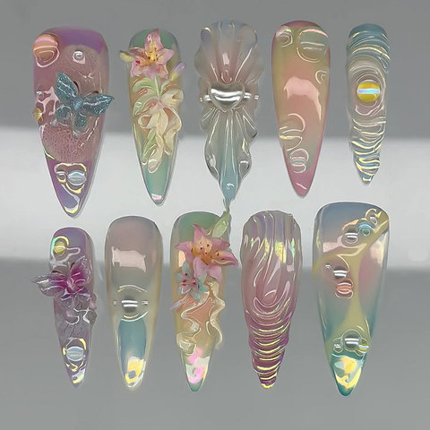Soporte de personalización de sus propios diseños y embalaje de alta calidad 10 piezas 100% prensa hecha a mano en las uñas 3D Nail Art uñas postizas